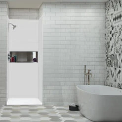 Transolid Linear 60″x32″ Single Threshold Shower Base With A Center Drain, White