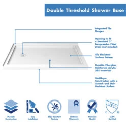 DreamLine SlimLine 36″ D X 54″ W X 2.75″ H Left Drain Double Threshold Shower Base, White