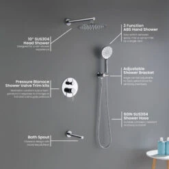 Circular Pressure 3-Function Shower System, Rough-In Valve, Chrome