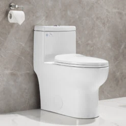 One Piece Toilet Elongated,Small Toilet Compact Modern Single Flush 1.28 GPF