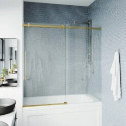 VIGO Elan Frameless Sliding Bathtub Door In Matte Gold