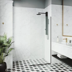 VIGO Frameless Fixed Shower Screen With Clear Glass, Matte Black