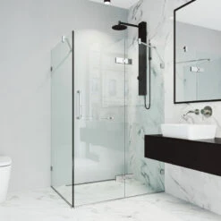 VIGO Monteray 32″x40″ Frameless Shower Enclosure With Right Base, Chrome