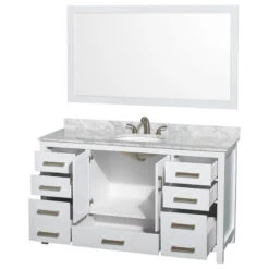 Ellary Bath Vanity, White, 60″, Double, With Mirror, Freestanding