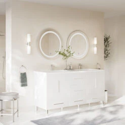 The Mendocino Bathroom Vanity, White, 67″, Double Sink, Freestanding