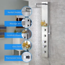 Luxier 59″ Shower Panel System With Rainfall Waterfall Shower Head Hand Shower