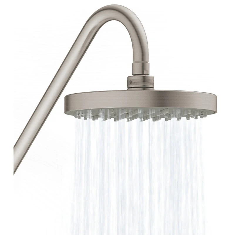 - 8″ rain showerhead with soft tips to clear mineral buildup for long lasting performance