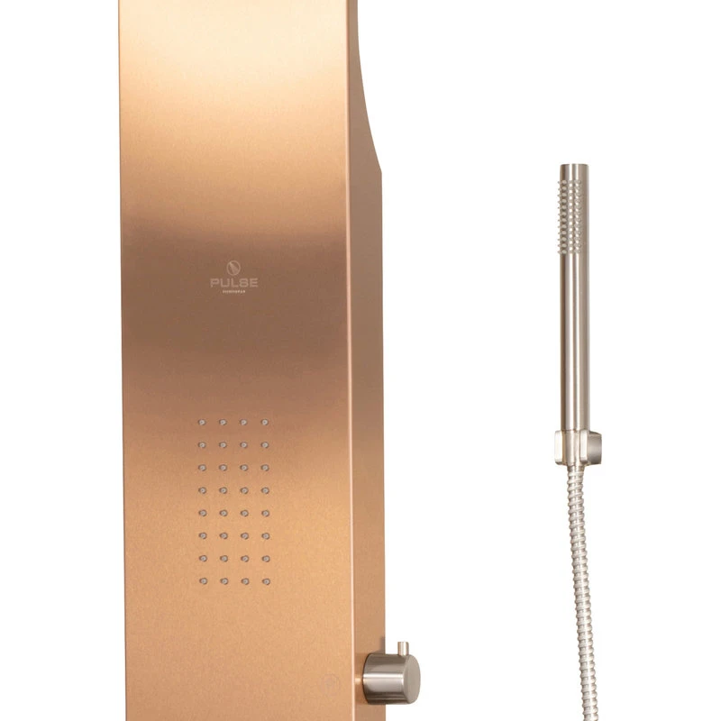 Uniquely styled, the Santa Cruz PULSE ShowerSpa will transform your shower into a beacon of beauty and bold performance. The striking brushed bronze finish with chrome plated brass fixtures adds elegance to the everyday shower. Offering a pressure balance valve, rainfall showerhead, waterfall showerhead, oversized body jets, and brass handshower that invigorate your body in soothing stimulation. Use each function independently or in any combination for the ultimate showering experience.