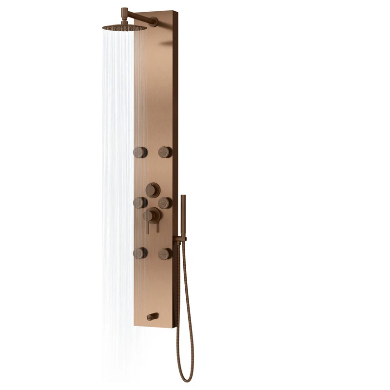 The PULSE Monterey ShowerSpa is a beautiful shower with oil-rubbed bronze fixtures and stainless steel bronze body. Equipped with six single-function brass Silk Spray Jet’s, a sleek wandshaped handshower, a convenient spout integrated into the panel, and a stainless steel bronze rain showerhead on a brass shower arm. Designed to fulfill every showering need, the PULSE Monterey ShowerSpa will give you a new shower experience every day!