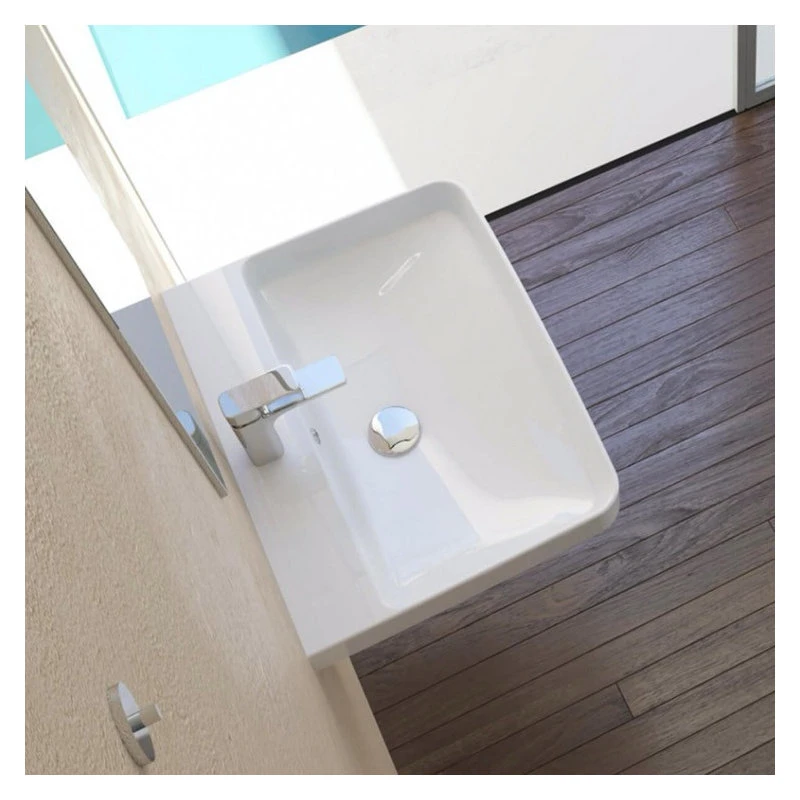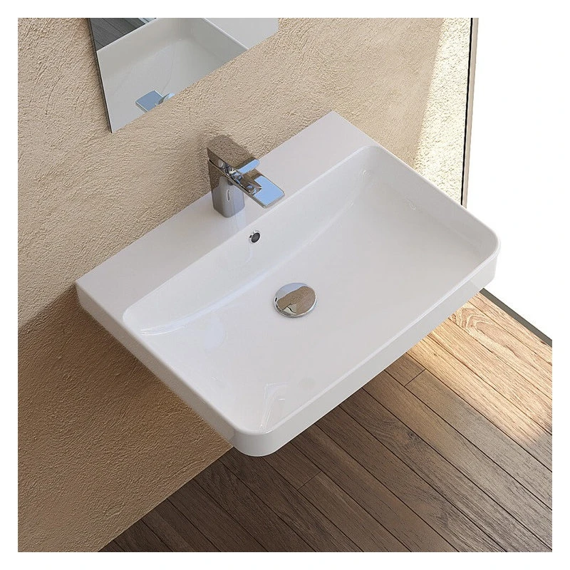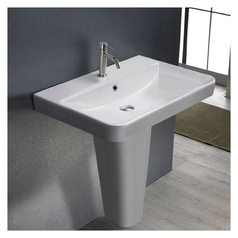 This modern 24″ wide rectangular pedestal sink is available in one faucet hole configuration, and even comes with a built in overflow. Made out of gorgeous white ceramic, this sink is the perfect addition to any modern bathroom.