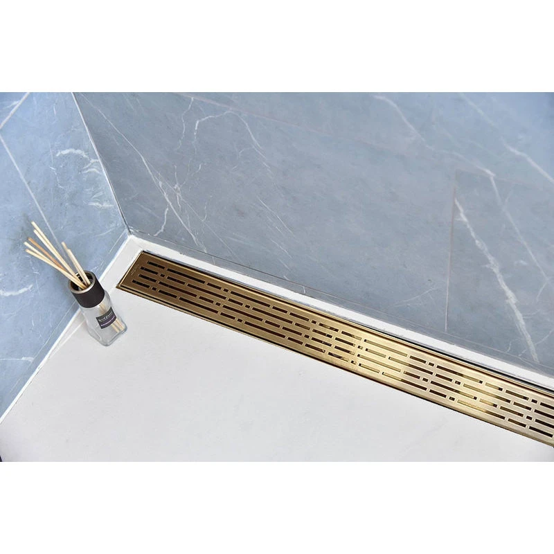 Satin Gold Linear Shower Drain Broken Lane Design by Serene Drains