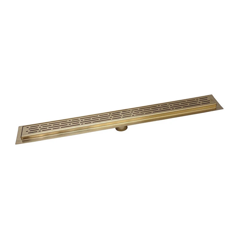 Satin Gold Linear Shower Drain Broken Lane Design (Available in Brushed Nickle, Polished Chrome, Matte Black, Satin Gold). Luxurious superior quality stainless steel linear drains. Perfect for showers, master bathrooms, pools, hotels, spas and etc. In stock ready to ship. Free Shipping
