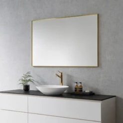 Sassi Rectangle Bathroom/Vanity Aluminum Framed Wall Mirror, Brushed Gold, 48″