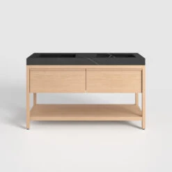 Shoji Bath Vanity, Whitewash Oak, 60″, Double Sink, Freestanding