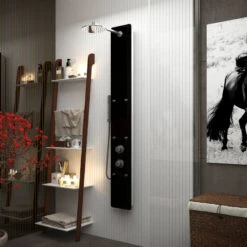 ANZZI Llano 56″ Shower Panel With Heavy Rain Shower And Spray Wand, Black