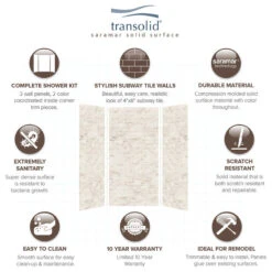 Transolid SaraMar 36″x36″x72″ 3-Piece Shower Wall Kit, White Venito Velvet