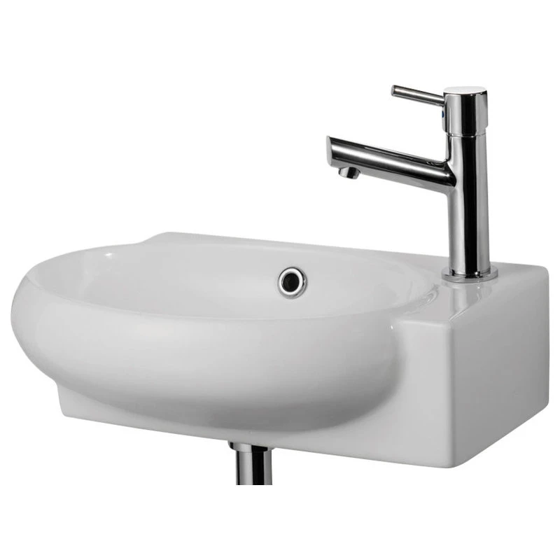 A simple small porcelain wall mounted bathroom sink is sometimes harder to find than you might think. This Alfi brand sink model offers a modern sink design in a compact size and convenient shape. Perfect for upgrading small bathrooms or powder rooms.
