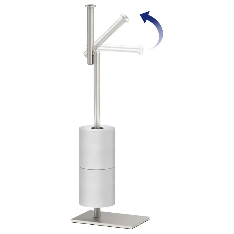 Minimalist design for the bathroom. This Modern Tissue Free Standing Toilet Paper Holder with Storage was inspired by the brilliant styles, superbly brought to today’s contemporary bathrooms by Gatco’s exceptional design team. The top of this piece tilts upward to alow up to tree tissue rolls to be stacked on the stem.