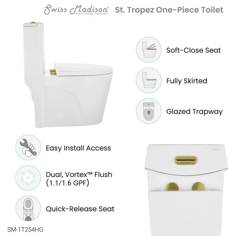 Be the first to review “St. Tropez Elongated Toilet, Dual Flush, Glossy White With Gold Hardware” Cancel reply