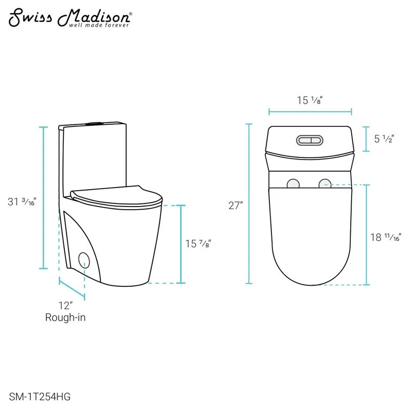 The St. Tropez One-Piece Elongated Toilet offers a seamless design with a fully skirted bowl creating a modern design for any bathroom. The dual-flush function offers the ability to conserve water without compromising performance. Its dual-flush function conserves water without compromising on power, while our Vortex™ flush technology uses powerful dual nozzles to keep your bowl cleaner than standard rim holes.