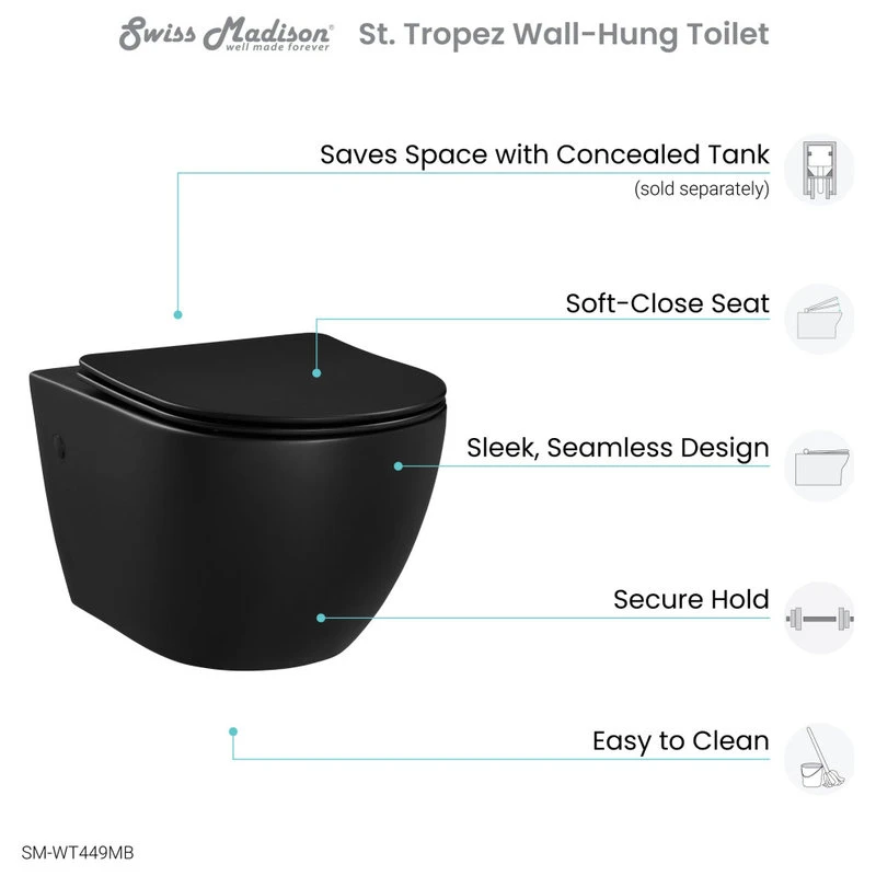 The St. Tropez Wall hung toilet bowl saves precious space for residential and commercial bathrooms. The Carrier Tank is completely concealed, still offering simple access to the plumbing system through the actuator plate. The sleekest and seamless design, that is incredibly easy to clean.