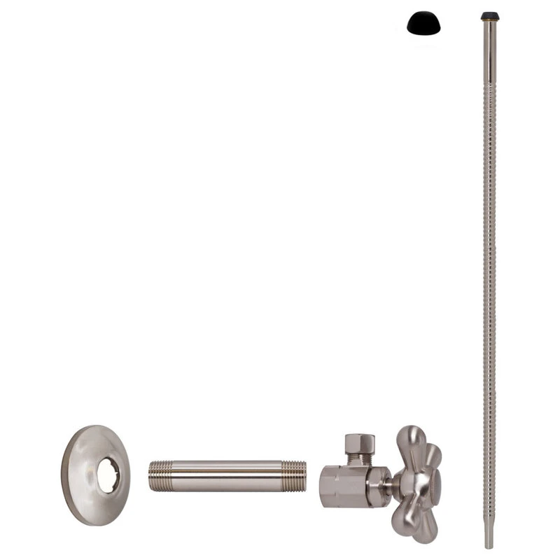 This Angle Stop Kit with Cross Handle is the perfect compliment for sinks and toilets. It uses a 1/2 in. IPS threaded Inlet with a 3/8 in. OD Compression outlet with nut and ferrule. The kit features a 20 in. corrugated riser with seals for sink or water closet. The valve uses traditional compression closure for positive seal. It is available in a variety of finishes.