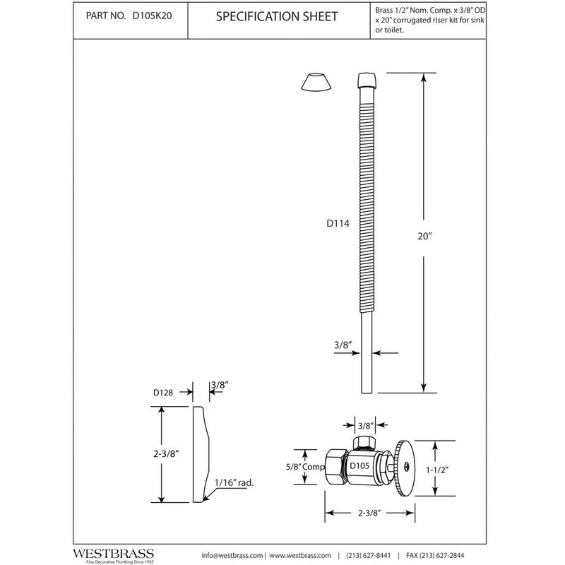 SKU: D105K20-12 Categories: Bathroom Fixture Parts, Bidet & Toilet Parts Tags: Angle stop, Sink, Sinks, Supply kit, Toilet, Toilet accessories, Toilet parts, Toilet products, Valve