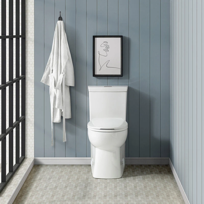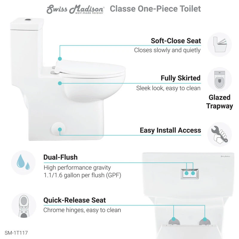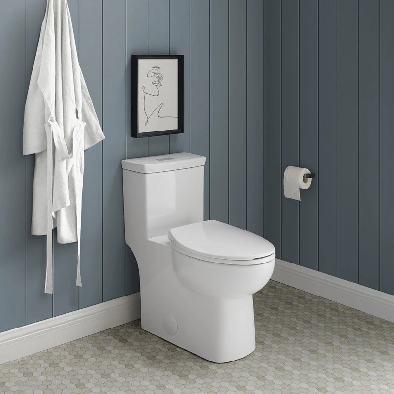 The Classe One-Piece Elongated Toilet is a fully skirted, sleek modern toilet. Its dual-flush function conserves water without compromising on power.
