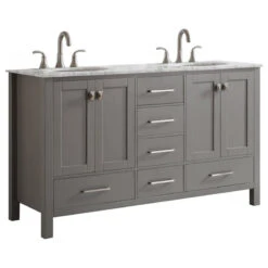 The sleek and sophisticated allure of the Ezra bathroom vanity is the epitome of contemporary design. Crafted from solid wood and a natural stone countertop, the vanity combines nature’s beauty with polished controlled construction. Complete with plenty of storage space, the Ezra bathroom vanity shows that it offers more than just its looks. Its timeless and versatile style means it will fit in perfectly with your next bathroom renovation.