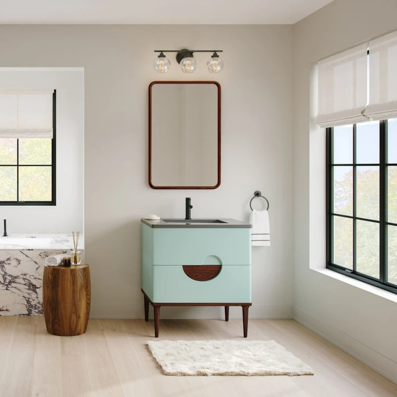 The Rhonda Vanity’s uniquely swirled design marks the path to ample storage space. Conveniently designed with soft-closing drawers, its sleek yet eccentric style makes it the perfect focal point whether you’re creating a modern minimalist powder room or colorful boho lavatory.