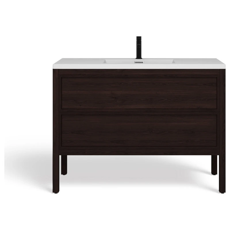 From early work calls to late nights out, the Shiloh is built to bookend your busiest days. At a glance, its silhouette takes the shape of a timeless, freestanding vanity with its four straight legs and boxy design. Look longer and you’ll notice its reinforced acrylic countertop and sink seamlessly integrate for high-end style. Below, its two soft-close drawers hide enough out-of-sight storage for nearly all your essentials. Crafted with nine layers of high-density hardwood and five coats of finish, the Shiloh is sturdy, durable, and ready for whatever you throw at it.