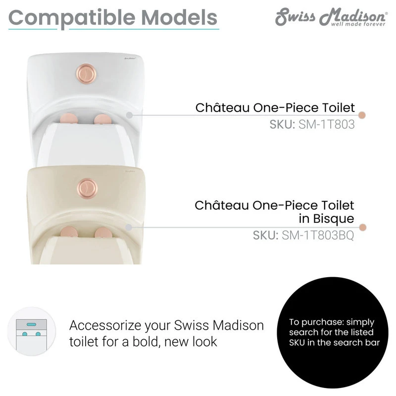 The colored toilet seat hardware and push-buttons give customers the ability to customize their bathroom décor. Available in a variety of color options, these additions will make any bathroom setting feel unique.