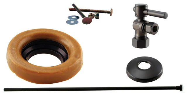 The Westbrass 5/8 in. compression (1/2 in. nominal copper pipe) inlet x 3/8 in OD outlet with 20 in. long brass toilet supply kit makes it easy to outfit your toilet. The kit includes everything required to stylishly supply water to your toilet, including an attractive modern lever handle angle stop, annealed 3/8 in. x 20 in. trimmable supply line and wax ring with closet bolts. Available in a variety of decorative finishes, this is sure to turn a functional but ugly installation into a complementary work of art.