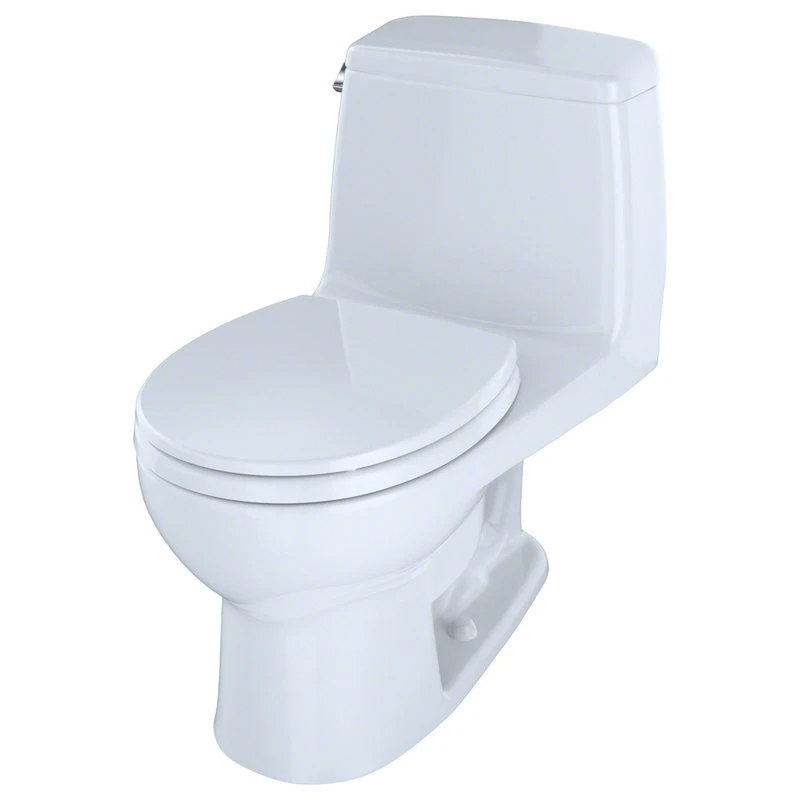 The TOTO Eco UltraMax One-Piece Round Bowl 1.28 GPF Toilet projects TOTO’s mark of excellence: People Planet Water. The TOTO Eco UltraMax features a sleek, one-piece design that will immediately beautify the appearance of your bathroom. The one-piece design will immediately beautify the appearance of your bathroom. The one-piece design is not only aesthetically pleasing, but also offers the benefit of being easier to clean versus a two-piece toilet. By removing the gap between the tank and bowl, we eliminate the hiding place for dirt and debris. An additional benefit of the one-piece toilet is that there is no threat of leaks from bolts or gaskets that can occur in two-piece toilets. The TOTO Eco UltraMax utilizes TOTO’s E-Max flushing system. The E-Max flushing system features a 3 wide flush valve, extra-large siphon jet, and a large trapway. This reliable, highly efficient combination generates a powerful cleansing flush while only using 1.28 gallons of water. The TOTO Eco UltraMax 1.28 GPF meets the standards for EPA WaterSense, and California’s CEC and CALGreen requirements. The TOTO Eco UltraMax has a left-hand chrome trip lever and has an included TOTO SoftClose seat.