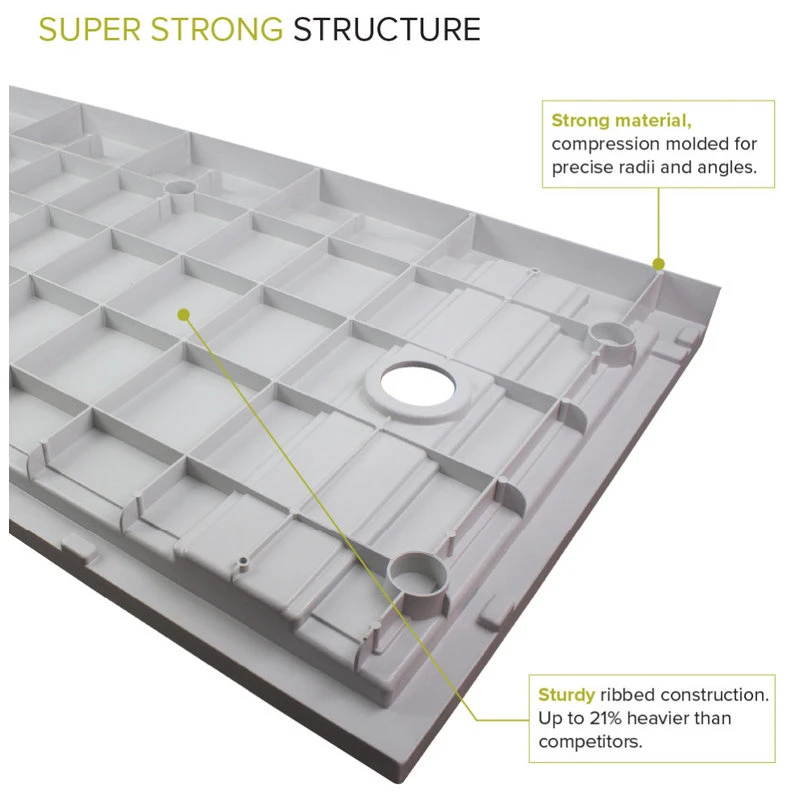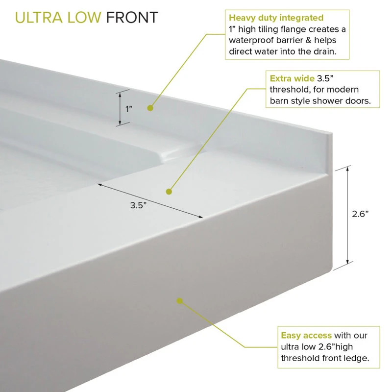 - Easy installation makes this linear shower base the perfect choice for remodeling or new construction