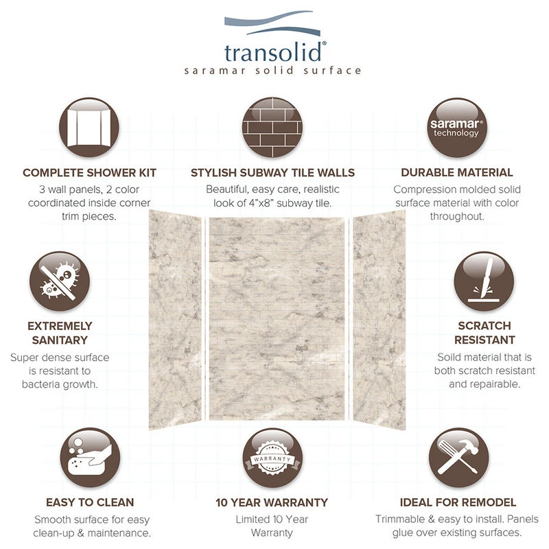 Subway tile has become a staple for design and Transolid is staying current with this trend by offering the Saramar bath and shower wall panels. Subway tile offers a classic element that can elevate the design of any room; however, it’s clean and bright characteristics really appeal to a bathroom. These walls are ideal for a quick remodel, because there is no messy demolition required, instead, Saramar walls simply glue right over your existing surface. Saramar walls are hygienic, durable, and resistant to stain; they work with new and existing construction, they are trimmable to fit any space, and are on trend with the latest colors and patterns. Discover whether these bathroom wall panels are the right choice for you!