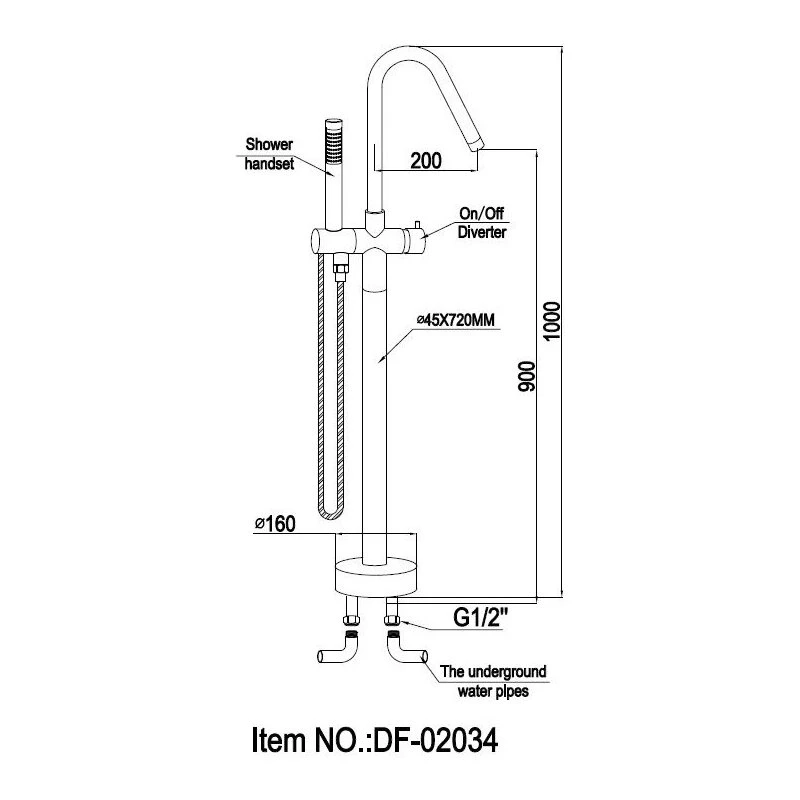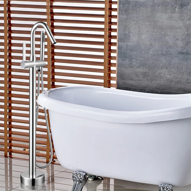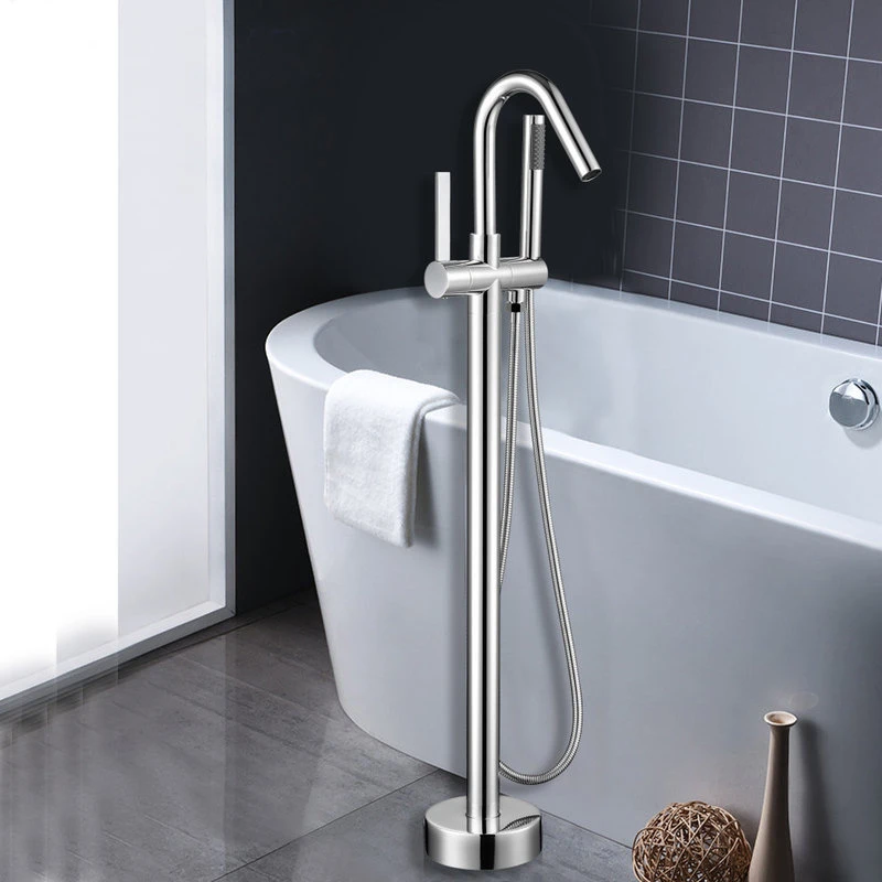 - Freestanding tub faucet with handheld shower
