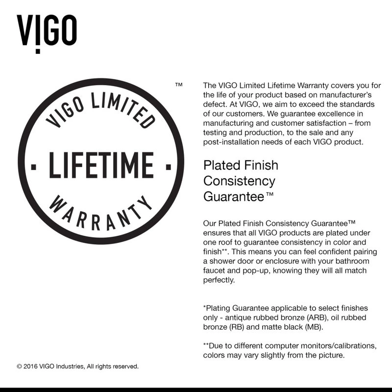 - LIMITED LIFETIME WARRANTY: All VIGO shower doors and enclosures feature a quality assured warranty.