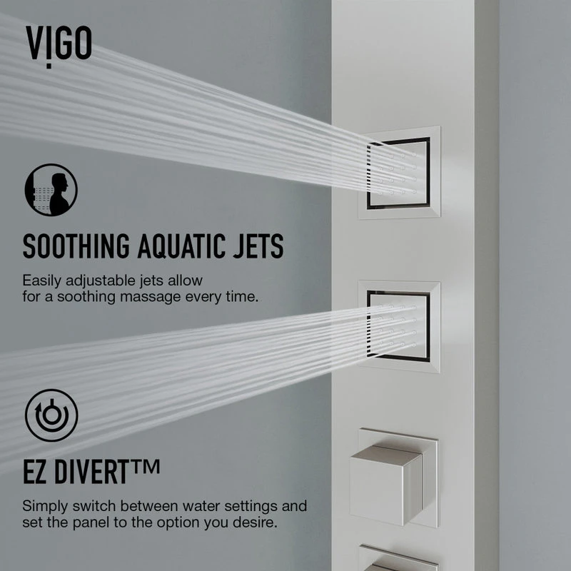 Indulge in a spa-like shower experience with The VIGO Bowery shower massage panel with tub filler. Intelligently engineered for full-body coverage, optimal water pressure, and targeted hydrotherapy, the shower panel relieves pain, relaxes muscle tension, and reduces stress. Coated in a 7-layer finish, the shower panel resists rust and corrosion to ensure lasting brilliance. Engineered for sustainability, The Bowery makes your home eco-friendly and exceptionally relaxing. The shower wall panel provides more pressure and water coverage than traditional showers, yet the 1.8 GPM eco-friendly system was designed to conserve water. Instantly upgrade your shower design following the simple DIY installation.