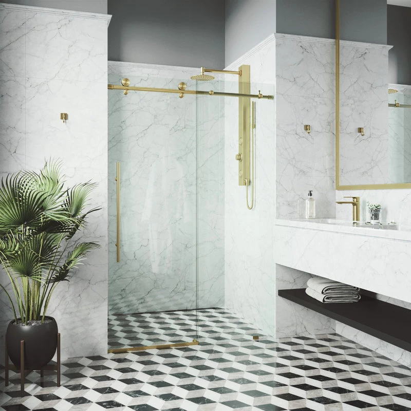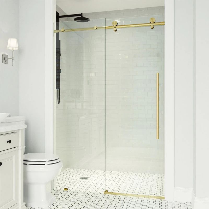 VIGO presents the Elan E-class Frameless Sliding Door with a premium, modern design and eye-catching rollers. The modern design with premium stainless steel hardware set the Elan E-class apart from other shower doors.Proprietary RollerDisk Technology ensures a lifetime of structural stability. Engineered with classic roller sliding doors, it ensures seamless shower entry. VIGO reinvents your shower experience and brings you a sliding shower system that provides exceptional performance and promises a relaxing shower experience.