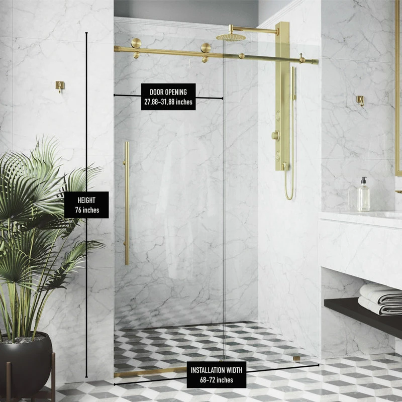 VIGO presents the Elan E-class Frameless Sliding Door with a premium, modern design and eye-catching rollers. The modern design with premium stainless steel hardware set the Elan E-class apart from other shower doors.Proprietary RollerDisk Technology ensures a lifetime of structural stability. Engineered with classic roller sliding doors, it ensures seamless shower entry. VIGO reinvents your shower experience and brings you a sliding shower system that provides exceptional performance and promises a relaxing shower experience.