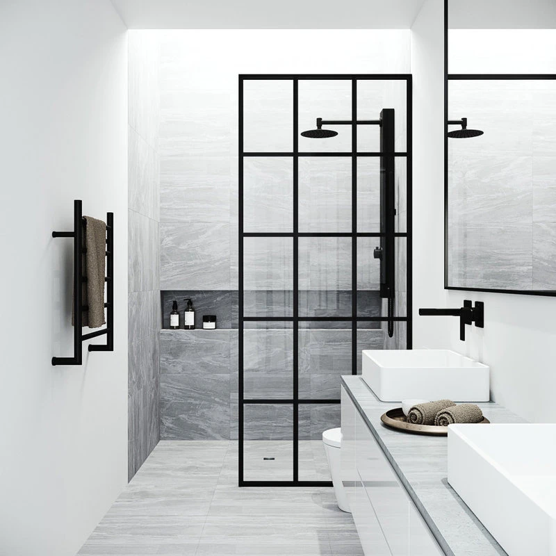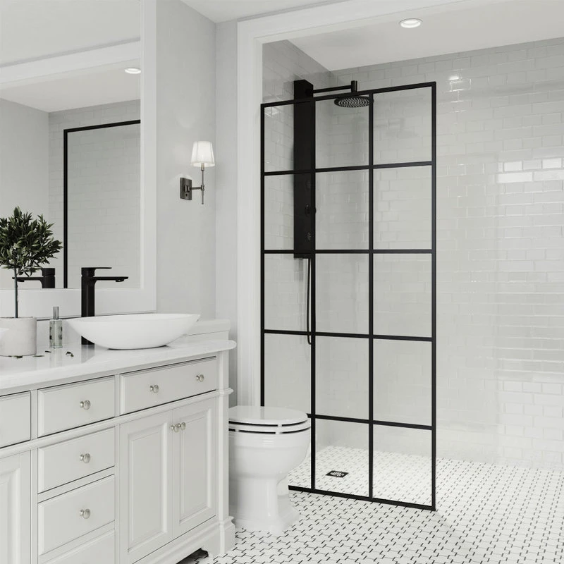 An updated take on a classic favorite, the VIGO Mosaic Fixed Framed Shower Screen is made from the same high-quality, transparent tempered glass that makes all of our shower screens and doors exceptionally safe and resilient. This model features a French-grid style design with painted black lines intended to mimic metal frames. This modern detail keeps the screen lightweight without sacrificing style. Flexible installation options allow the Mosaic to be connected to any wall and extend outward. Well-made with waterproofing seal-strips, the Mosaic pulls together a look that invites anyone to step right in.