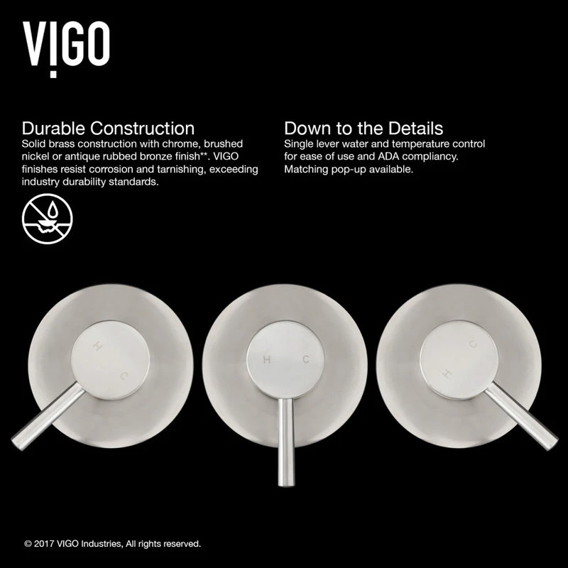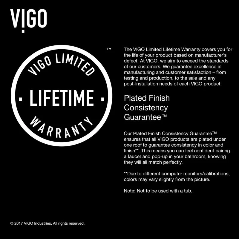 - All VIGO Bathroom Faucets are backed by a Limited Lifetime Warranty.