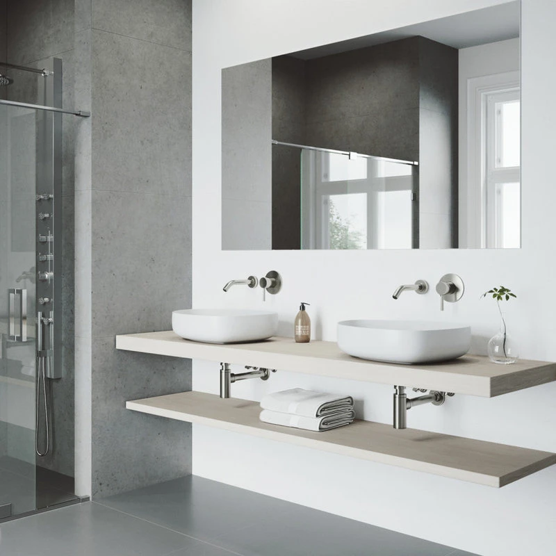 The VIGO Olus is a modern, wall-mount bathroom faucet. Made from the highest quality brass with seven layers of premium hardware coating, the Olus handily resists wear and tear. It mounts directly on the wall above any bathroom sink to keep a counter space open without compromising functionality. A single lever operates the water and temperature controls. The faucet runs at a 1.2 GPM flow rate, conserving water without reducing performance. Olus has a mineral-resistant nozzle that is easy to clean. The seal ceramic disc valve is durable and leak-free. This model offers the option to purchase a pop-up drain separately.