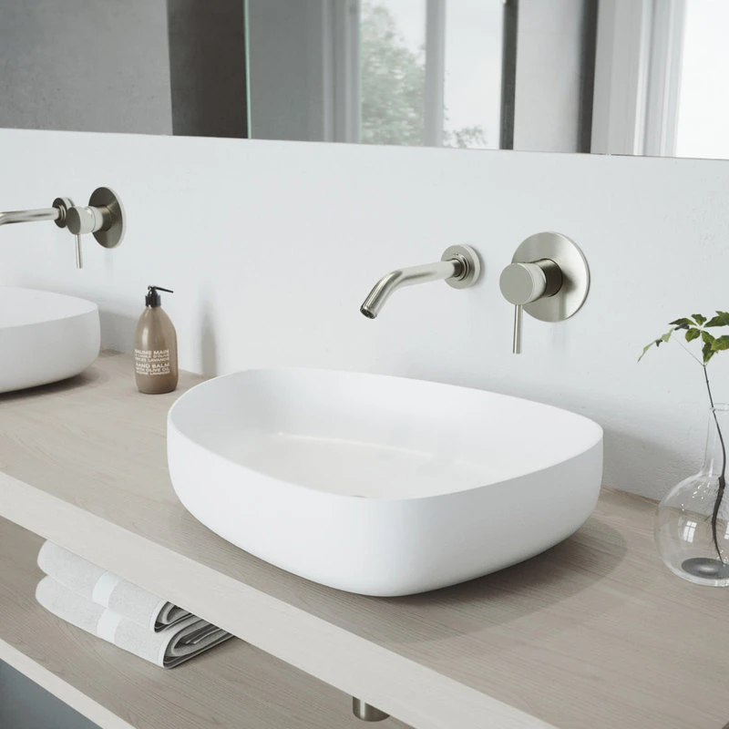 - WALL MOUNT INSTALLATION: Easily install the single-lever faucet and spout on the wall above your vessel sink;