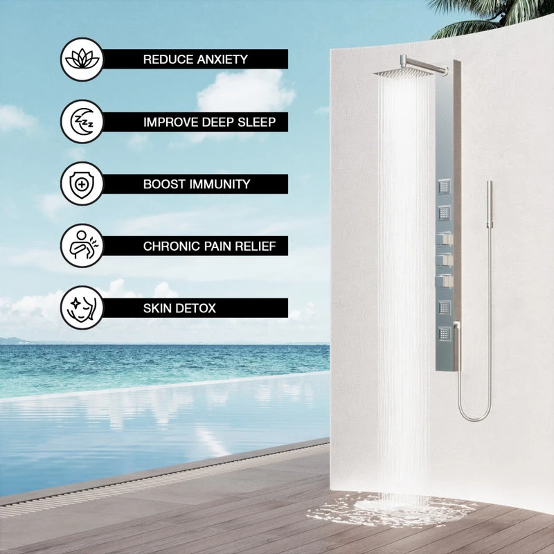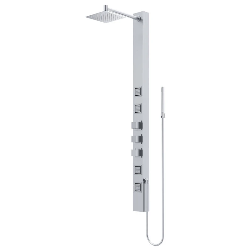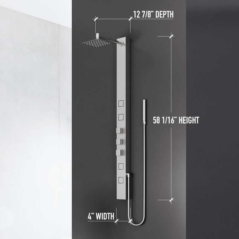 Reimagining design, The Sutton integrates intelligent hydrotherapy with pressurized body sprayers that easily adjust to target pain points, relax muscle tension, and promote better sleep. The square rainfall shower head delivers a full-body rinse, while the handheld spray head easily removes from the dock to provide target water flow. The shower wall panel provides more pressure and water coverage than traditional showers while still conserving water. With a quick and easy DIY installation, The Sutton has the power to instantly transform your bathroom design.