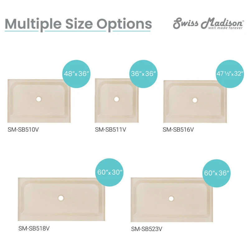 The Voltaire Single-Threshold Center-Hand Drain Shower base is a stylish addition to any bathroom setting. Its traditional low threshold provides easy access to the shower. The acrylic and fiberglass technology reinforces a durable and safe shower base. This shower base is offered in a variety of colors giving you the versatility needed to enhance any modern bathroom.