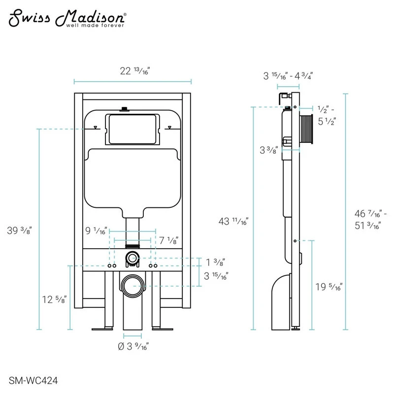 Necessary for wall-hung toilet bowl installation the Concealed In-Wall Tank Carrier is a durable and dependable choice. An adjustable steel frame allows a broad selection of mounting heights for toilet bowls paired with it. The insulated tank reduces flush noise and protects from condensation and sweating.