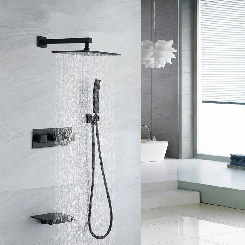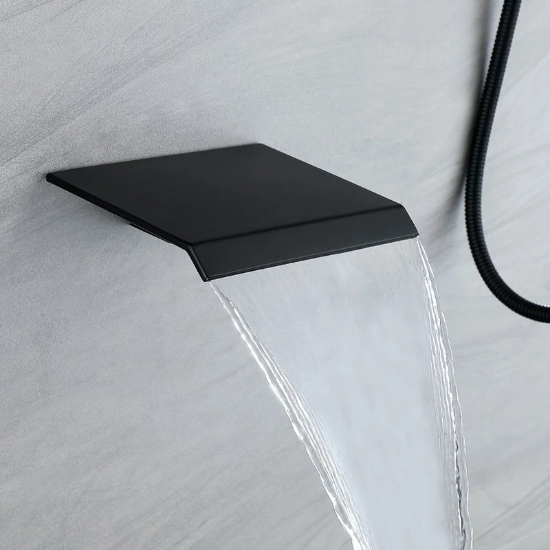 - Multiple Function: Rain shower provides a wide range of soft rain spray. Hand shower for targeted cleaning and waterfall bath spout fills the bath quickly.