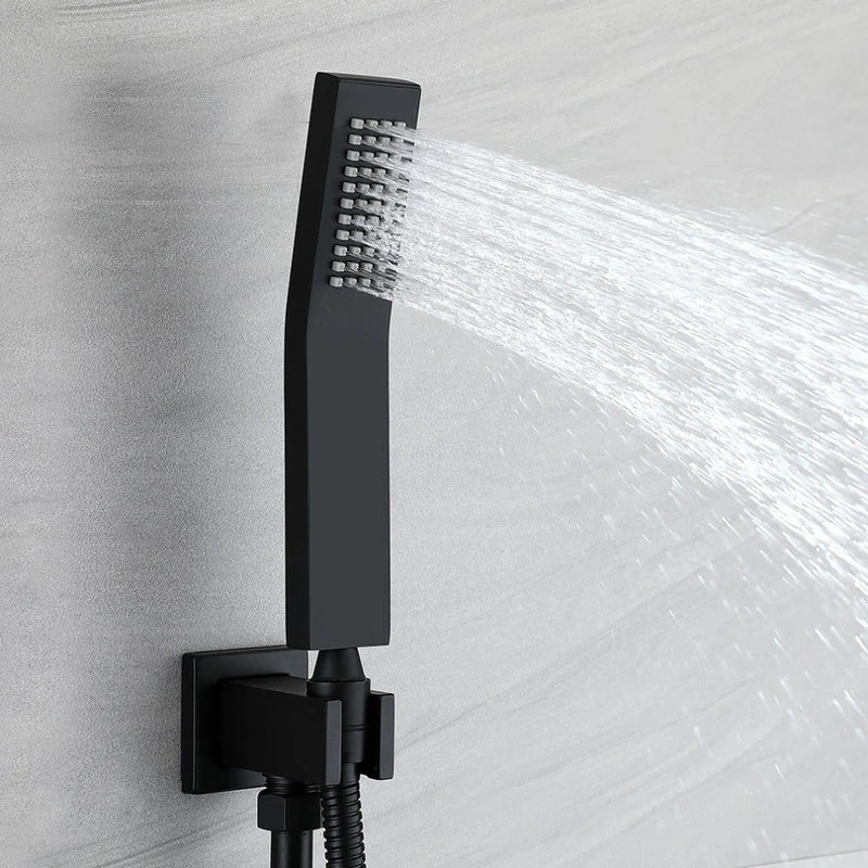 Ceiling Mount Square Black Rain Shower System With Body Spray Jets In Wall, 16 I